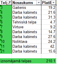 Kopējā nomai piedāvāto telpu platība ir 210,1 m², ar iespēju nomāt telpas arī atsevišķi (saskaņā ar pievienoto telpu plānu un telpu eksplikāciju).