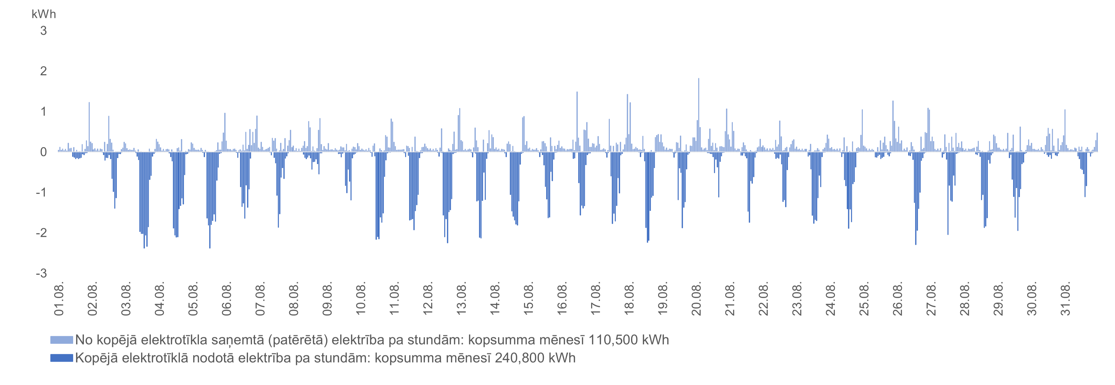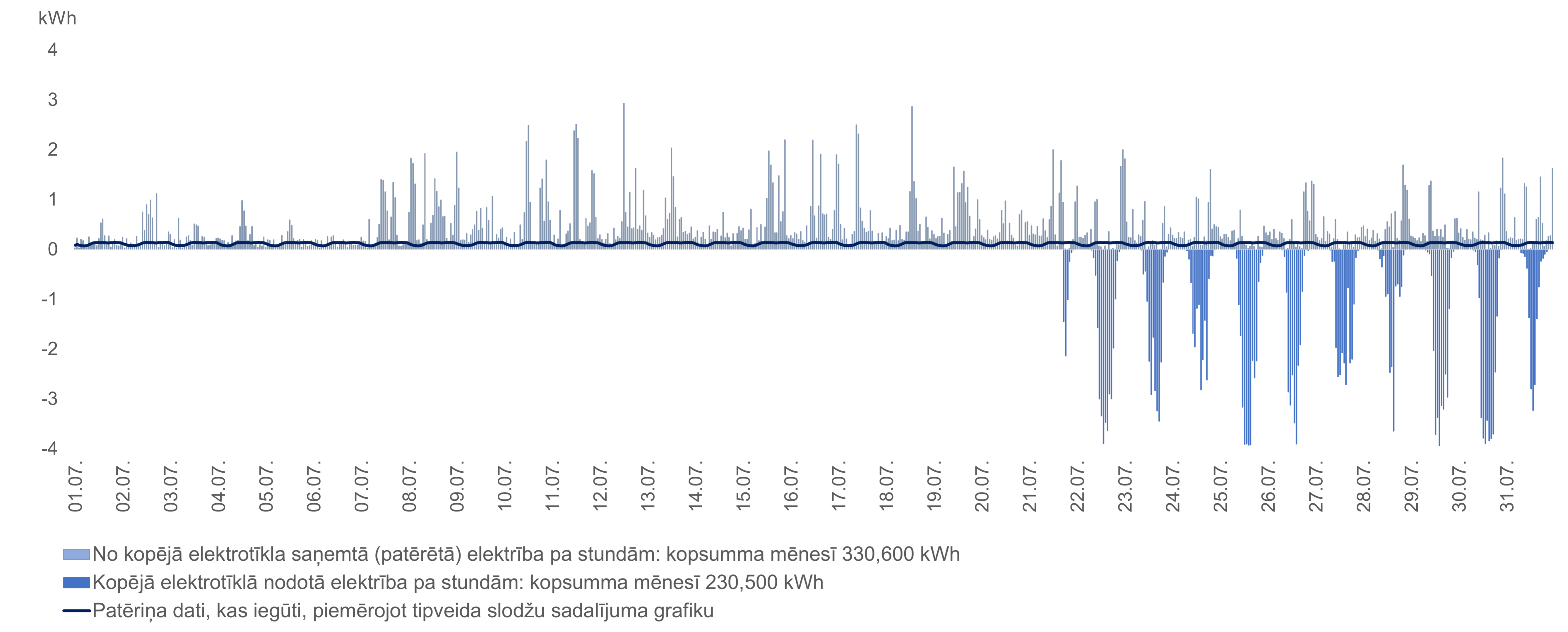 Mēnešos, kad no kopējā elektrotīkla saņemts mazāk elektrības nekā nodots vai uzkrāts no iepriekšējiem mēnešiem par elektrību nav jāmaksā un tipveida grafiks nav nepieciešams. Rēķinā tas atspoguļojas kā patēriņš 0 kWh.